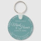 These beautiful keychains are designed to be given as a gift or wedding favour to your maid of honour. The elegant design features a frilly silver grey faux foil border with pale grey text on a teal or turquoise background. There is space for her name, the wedding date and the names of the couple. Great way to thank her for being a part of your special day!