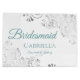 These beautiful gift bags are designed as a wedding gift or favour bag for your Bridesmaids. They feature a simple yet elegant design with silver faux foil lace frills and teal or turquoise coloured text reading "Bridesmaid" written in fancy script letters. There is also a place to enter her name, the couple's name, and the wedding date. Fill with gifts, favours, candy, or any other wedding swag or thank you gifts. Beautiful way to thank her for being a part of your special day.
