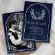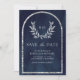 Silver Laurel Wreath Leaves Navy Blue Wedding Save The Date