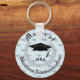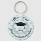 Master of Business Administration Degree Graduation Silver Laurel Wreath Keychain. Celebrate your M.B.A. graduation with this cool design. Features a silver laurel wreath encircling a black stylised academic mortar board, with the degree letters "MBA" underneath. The degree "Master of Business Administration" is written in fancy calligraphy around the outside of the silver wreath. The design is placed on top of a grey multiple mortar board background pattern. You can change the pale blue background colour to whatever colour you prefer. Separate designs available for other masters, bachelors and higher degrees.
