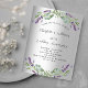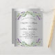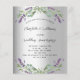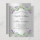 A faux silver looking background. Decorated with lavender flowers and eucalyptus greenery. Personalise and add your names and the details.