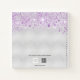 A faux silver looking background with violet, lavender faux glitter dust. Add your name, and text. The name is written with a hand lettered style script with swashes.
