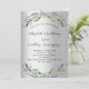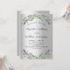 A faux silver looking background. Decorated with lavender flowers and eucalyptus greenery. Personalise and add your names and the details