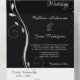This pretty all season wedding invitation with tear away RSVP card in tones of silver and black will give a sense of elegance to your wedding! The inside has a graceful silver swirl adorned with a few leaves, and there's a subtle silver confetti overlay to add a bit of sparkle. Your wedding text is also in silver at the right of the leaf swirl image. Everything is placed on a dramatic black background. The bottom tear away RSVP portion has the swirl image continued, but is white to make it easy for your respondent to mark. If you don't need a text field, just blank it out, and if you need help organising different text, please contact us. We are always happy to help. If you're having a buffet reception, we can work with you to re-design the RSVP portion, so don't hesitate to ask! An added bonus and personal touch is your own photograph on the back flap.