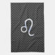 Silver Leo Zodiac Symbol Charcoal Carbon Fiber Tea Towel