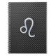 Silver Leo Zodiac Symbol on Carbon Fibre Print Spiral Notebook