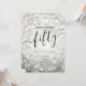 Elegant Glam Silver Glitter Lights 50th Birthday Script template featuring party program and menu text, glitter lights and modern typography script.