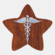 Silver Like Caduceus Medical Symbol Mahogany Print Star Sticker
