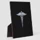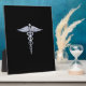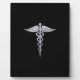 Silver Like Caduceus Medical Symbol on Black Decor Plaque