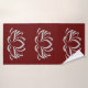 Bath Towel: Three big silver lotus flowers on a burgundy red background.