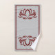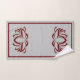 Hand Towel: Two burgundy red lotus flowers with a burgundy red outline on a silver background.