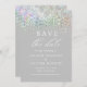 Silver Luxury Glitter Wedding Save The Date Cards features a silver background accented with iridescent glitter and your custom save the date information. Personalise with your text by editing the text in the text boxes provided. Designed for you by ©Evco Studio www.zazzle.com/store/evcostudio