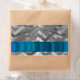 PERSONALIZE this stylish modern silver grey metallic looking abstract chevron pattern and blue satin look ribbon , with your own text, name or monogram, initials .
