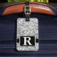 Silver Metallic Glitter Modern Elegant Monogram Luggage Tag