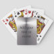 Add your own text to this customisable deck of silver or aluminium metal look playing cards. Replace the sample words in the template with your own name or words. The cards have an image of a metallic looking grey or silver design. There is no metal on the deck of cards.