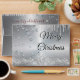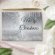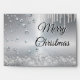 Silver Metallic Merry Christmas Snowflakes, A elegant check envelope made of silver metal, decorated with diamond, scattered bronze, and silver glitter drops, with the word merry Christmas on it.