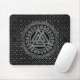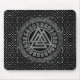 Silver Metallic Valknut Symbol on Celtic Pattern Mouse Pad