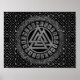 Silver Metallic Valknut Symbol on Celtic Pattern Poster