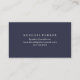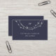 These stylish business cards feature a dark midnight blue background, with a faux silver circular wreath hanging down from the top of the card. Personalise with all of your information in light grey text.