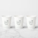 This modern graduation party paper cup features silver typography "Class of 20YY (graduation year)" and a graduation cap graphic with a confetti background. You can customize the text in black. More color options and party supplies are available at my shop BaraBomDesign.