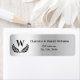 A faux silver looking background. Decorated with a laurel wreath. Personalise and add your name, address and family monogram initial.