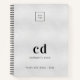 A faux silver metallic looking background and black text. Personalise and add your logo, monogram initials, name and a title. Your logo both on the front and the back. Space for your website address on the back.