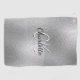 A faux silver metallic looking background. Personalise and add a name, your monogram initials. The name is written with a hand lettered style script.