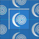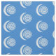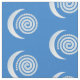 Silver gradient crescent moon accompanied by a spiral pinwheel of light, on a deep cerulean blue evening sky background