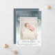 Cute silver moon stars blue watercolor with hand painted dusty blue and green watercolor wash baby birth announcement. Add your baby photo.