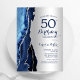 Navy blue and silver agate 50th birthday party invitation. Elegant modern design featuring royal blue watercolor agate marble geode background, faux glitter silver and typography script font. Trendy invite card perfect for a stylish women's bday celebration. Printed Zazzle invitations or instant download digital printable template.