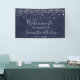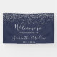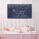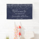 A personalised and custom wedding banner to welcome your guests, modern silver navy blue confetti typography wedding