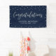 This event banner design features simple silver glitter confetti and "Congratulations" typography on a navy blue background. This congratulations banner is the perfect decoration for a modern chic party. You can customise the name and text at the bottom of the banner for your events. (Birthday, Retirement, Anniversary, Graduations or any other celebrations)