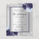 Silver navy blue floral budget wedding invitation flyer