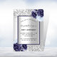 Faux silver looking background decorated with navy blue and light blue florals, flowers and faux silver glitter, sparkles. Personalize and add your name and party details. Black letters.