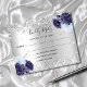 A faux silver metallic looking background, decorated with sparkling faux glitter and navy blue and light blue florals. Personalise and add the reply by date and your names.