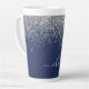 Silver Navy Blue Girly Glitter Sparkle Monogram Latte Mug