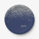 Silver Navy Blue Girly Glitter Sparkle Monogram Paper Plate
