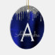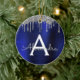 Silver Navy Blue Glitter Brushed Metal Monogram Ceramic Tree Decoration