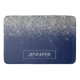 Silver Navy Blue Glitter Girly Monogram Name Bath Mat