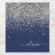 Silver Navy Blue Glitter Girly Monogram Name Wine Label