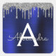 Silver Navy Blue Glitter Sparkle Monogram Name Square Sticker