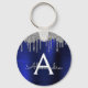 Silver Navy Blue Glitter Stainless Steel Monogram Key Ring