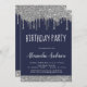 Silver and Navy Blue Sparkly Dripping Glitter Custom Any Age (13th, 16th, 18th, 21st, 30th, 40th, 50th, 60th) Birthday Party Invitation . This is the perfect (thirteen, sixteen, eighteen, twenty one, thirty, forty, fifty or sixty) Fun and Trendy Birthday Invitation for a Modern Elegant Sparkle Girly Birthday Party. Please contact the designer for matching customised items.