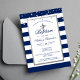 Silver Navy Blue Stripes Baptism Christening Boy Invitation