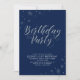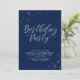 Let's celebrate your special day with this stylish adult birthday party invitation. This design features chic silver glitter typography and silver sparkle graphics with a navy blue background. Replace the sample photo with yours or delete it. This invitation will be perfect for a modern birthday party for any age.
