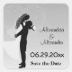 This design features a silver ombre background with a silhouette of a bride and groom. There is a cluster of stars in the shape of a heart behind the happy couple. Additionally, there is plenty of customisable text for you to add your party information. Shown here as a wedding Save The Date reminder, this versatile design can be customised for wedding showers or anniversaries too! We have this design available in a variety of colours and on a variety of matching products!
