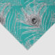 Silver Peacock Feathers on Teal Decoupage Tissue Paper