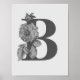 Lovely silver peony flower elegant monogram initial B design by Susan. You can personalize this design and add your own text or name.