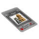 Design features a square frame to upload your photo into, a silver background and a pet tag to enter the name onto. Change the dates to the date of birth and passing of your pet or remove those options if you like. The phrase on the bottom says "Forever In Our Hearts." Click on "customise it" if you would like to change the font colours, styles or placement.