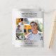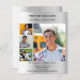 Create your own unique photo collage. Use four, 4 of your favourite photos. Personalise and add a name and party details. A faux silver looking background, black text.